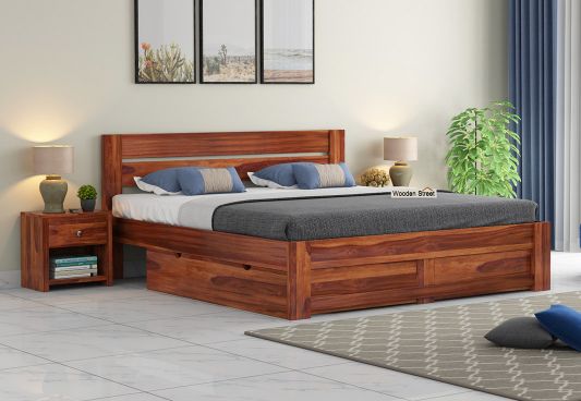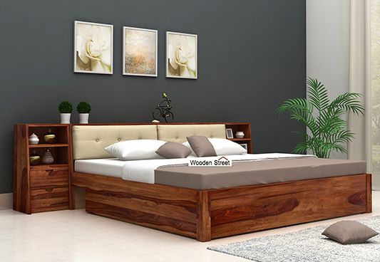 For instance, Wooden Street offers Drewno Upholstered Bed With Storage which is made with a tall and upholstered backrest along. The tufted and winged pattern of the backrest with English colors of upholstery like Irish cream, Chestnut brown, Indigo blue etc. the design is worth adorning in the house.