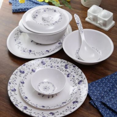 If you have a plain dining table set and want to add some flavor at every kind of meal, this melamine dinner set online can do best for you. This set will do not let disappoint in the concern of functionality, durability, and beauty. The light design blue color is giving perfect soothing vibes.