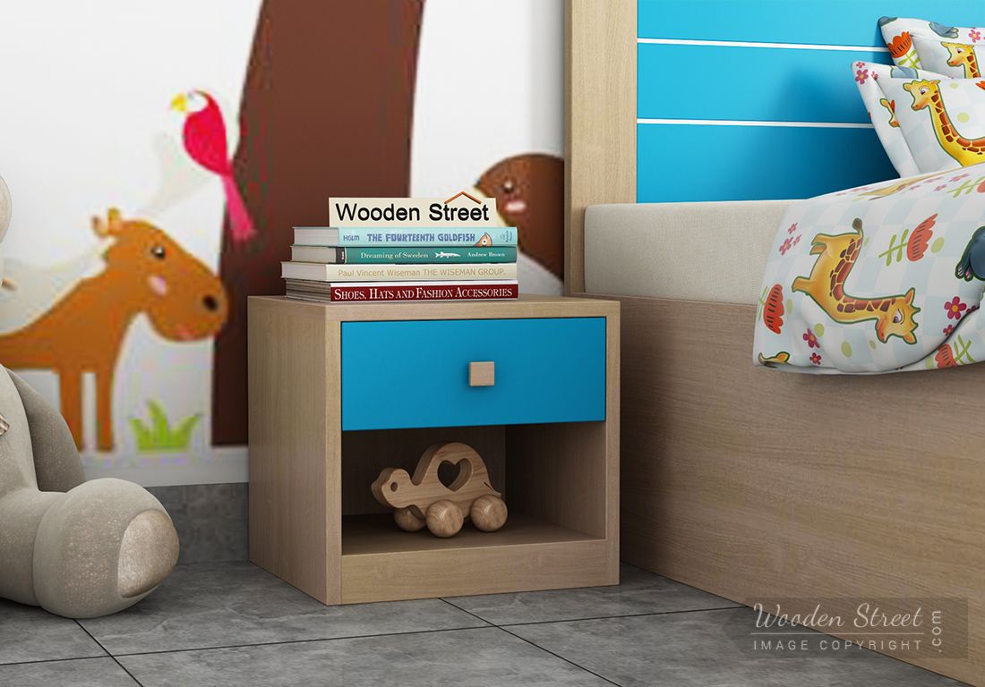 For example – the Marina kids bedside table of Wooden Street can be a useful piece of unit in the kid’s room. The table is crafted from premium quality wood with storage features. It consists of a drawer and a shelf and measures around 15 L x 15 W x 12 H. Moreover, the product comes in different color options at Wooden Street.