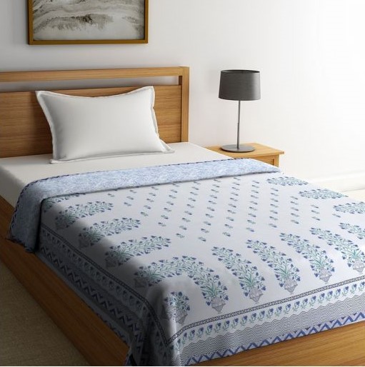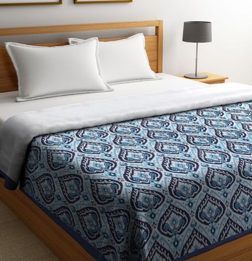 4. Blue Cotton Screen Print Floral Double Bed AC Dohar: This beautiful cotton piece has delicate patterns and vibrant shades along with stunning floral motifs. It is made from the finest cotton and has a beautiful blue-white color combination.